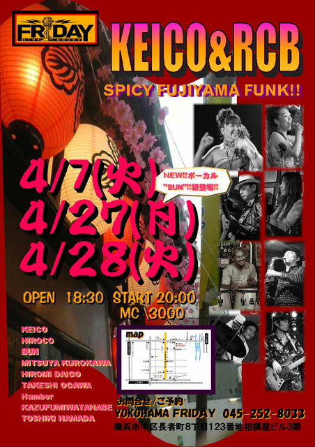 KEICO (Vo) 、黒川照家(Gr)、Hamber (Sax) 、Heyske(Pf) 、吉岡大典(Bass) 、小川岳史(Parc)