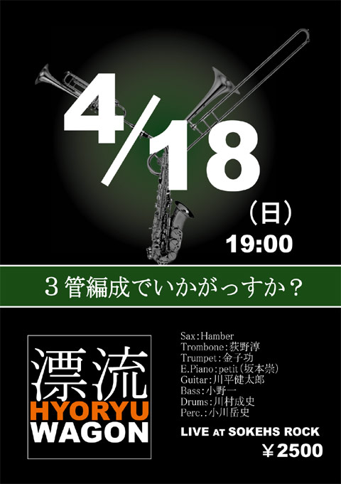 ゲスト:ハタヤテツヤ(Key) 西尾智浩(G) Hamber(Sax)