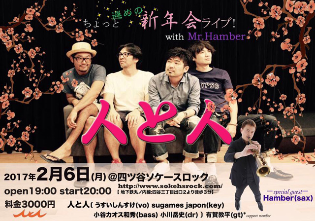[CHARGE] 前売(完売)5000円/当日(立ち見)5500円(飲食代・税・サービス料別)
