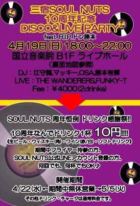 ■4/19 三宿 SOUL NUTS 10周年記念 DISCO&LIVE PARTY