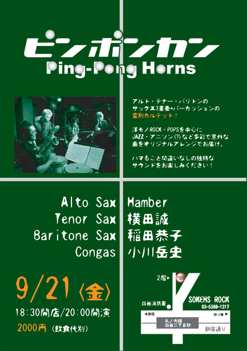 【!】 空席状況は四谷SOKEHS ROCK(03-5368-1317)にお問い合わせください。